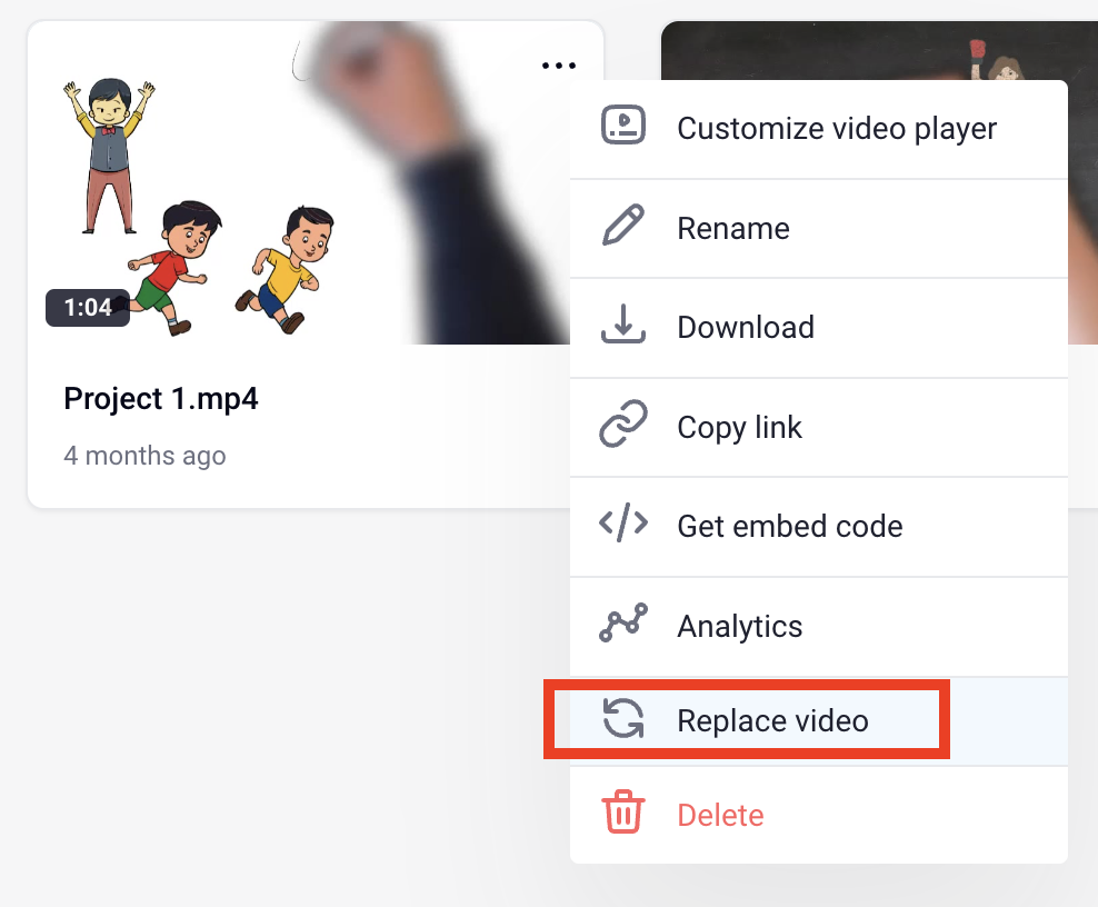Using the Replace Video feature, you can replace an existing video and keep the original video URL or embed code.