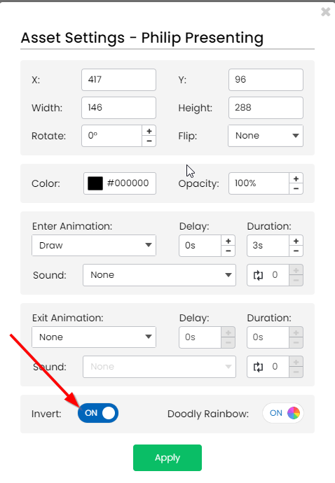 The black/green boards convert black into chalk white, where black is transparent. This means that if you have a gray image it will appear opaque. You can try modifying the invert option to see which fits your image best.